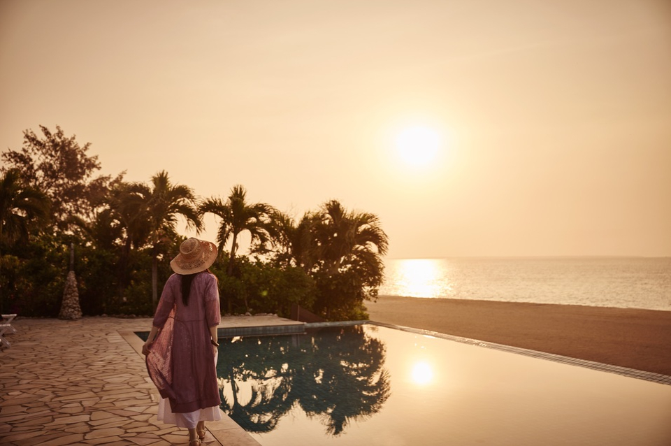 白い砂浜のプライベート感あるビーチと溶け合い、非日常の空間が広がります。日ごろのご褒美に、1日の元気なスタートに、爽やかな朝をお過ごしください。