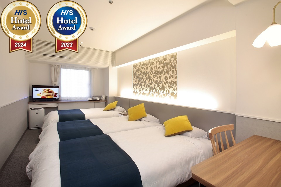 3名1室をご利用の場合、正ベッド2台+エキストラベッド1台または正ベッド3台、