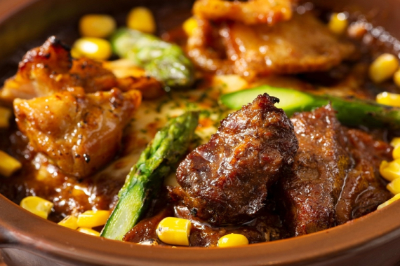 同じ「3種のお肉の焼きカレー」を食べられますので、スタッフの方にご確認をお願いいたします。