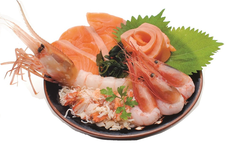 <えび・かに・サーモン丼>.....ぼたんえび・甘エビ・たらばがに・サーモン