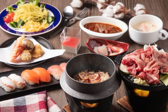 道南の新鮮な食材を用いた目でも舌でも楽しめる和洋中バイキングです。