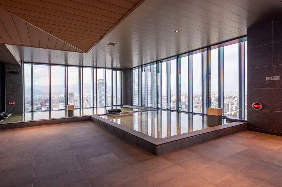 最上階の大浴場からは札幌の街並みを一望することができます。入浴後にくつろげる展望ラウンジも併設。