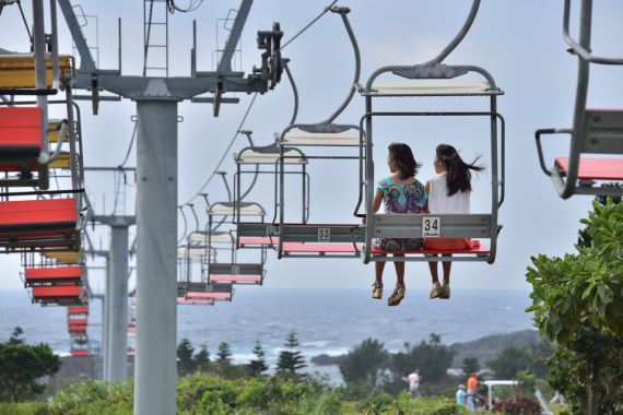 小高い丘の上から海に向かってのびる沖縄唯一のペアリフト!
